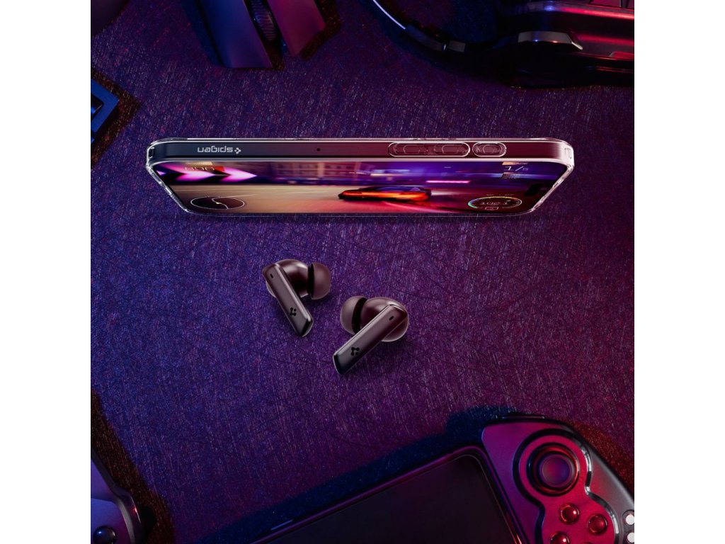 Spigen - Wireless Earbuds (SA2402) bezdrôtové slúchadlá Bluetooth 5.3 s aktívnym potlačením hluku, mikrofónom, nízkou latenciou a aplikáciou Spigen Audio - biele