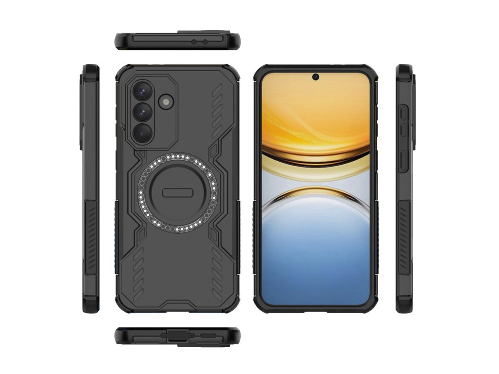 Puzdro proti nárazom Samsung Galaxy A37 5G ArmorMag Case kombinuje robustný vzhľad s futuristickými líniami a high-tech detailmi s protišmykovou textúrou pre bezpečné a pohodlné uchytenie.
