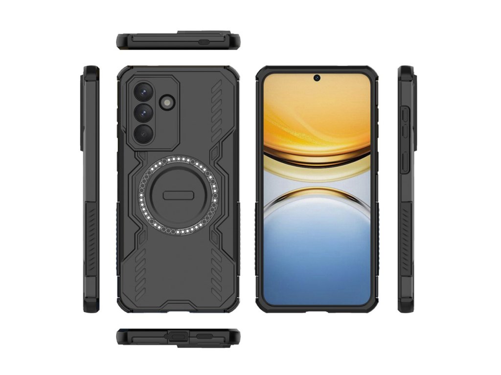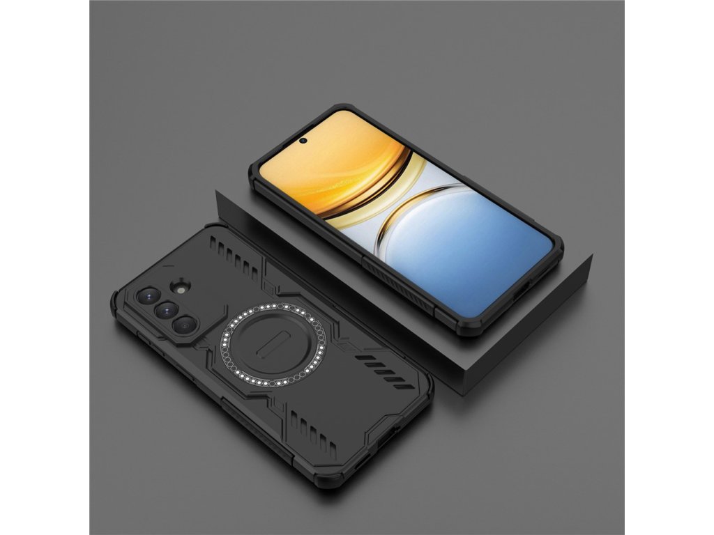 Puzdro s ochranou proti nárazom Samsung Galaxy A57 5G ArmorMag Case kombinuje robustný vzhľad s futuristickými líniami a high-tech detailmi s protišmykovou textúrou pre bezpečné a pohodlné uchopenie.