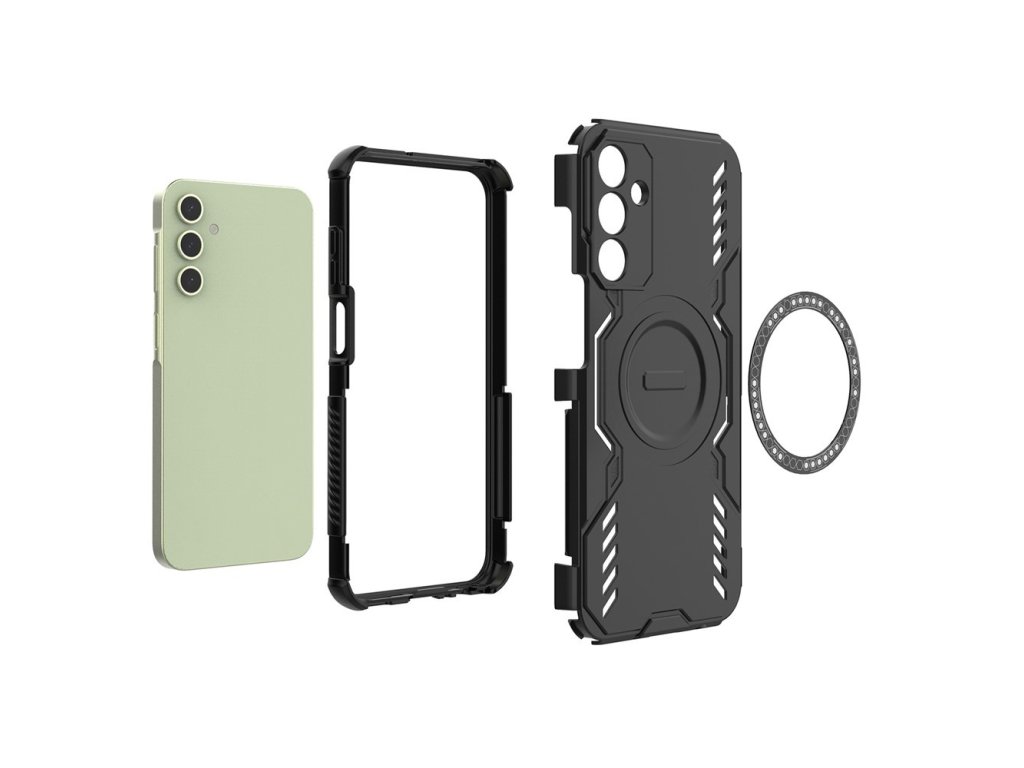 Nárazuvzdorné puzdro Samsung Galaxy A15 4G ArmorMag Case kombinuje robustný vzhľad s futuristickými líniami a high-tech detailami s protišmykovou textúrou pre bezpečné a pohodlné uchopenie.