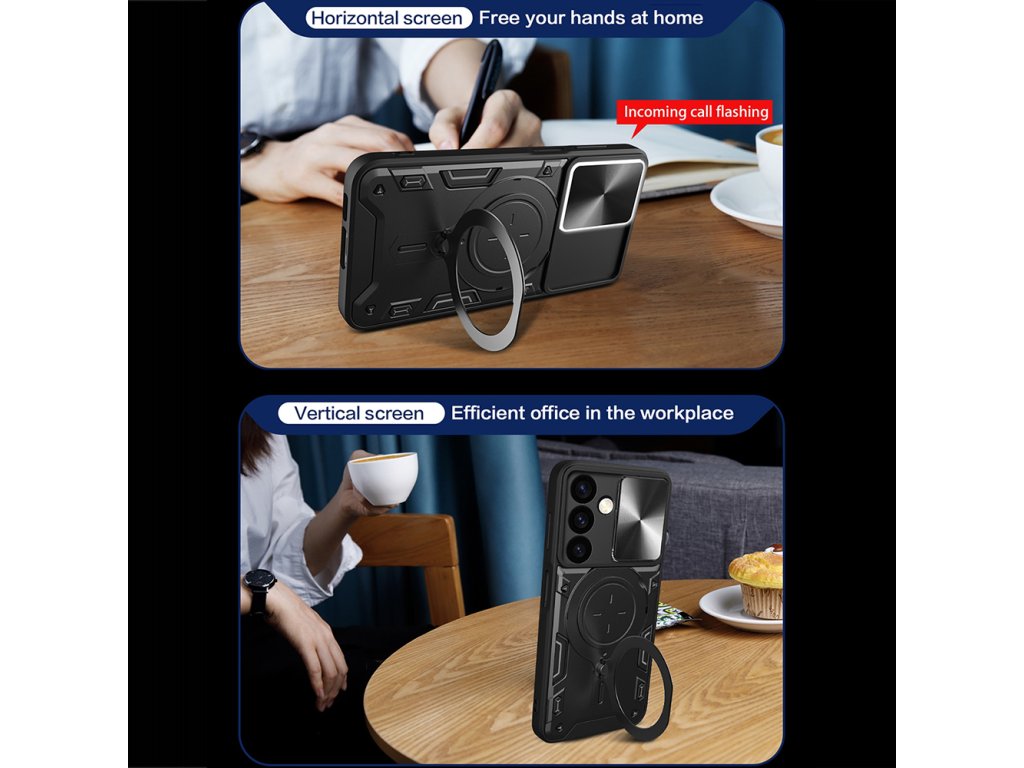 Ušetrite rodinný rozpočet tým, že investujete len raz do multifunkčného, nepostrádateľného produktu. Puzdro Samsung Galaxy S24 je vybavené otočným krúžkom z nehrdzavejúcej ocele, ktorý slúži ako stojan pre telefón na sledovanie mediálneho obsahu v režime krajina.