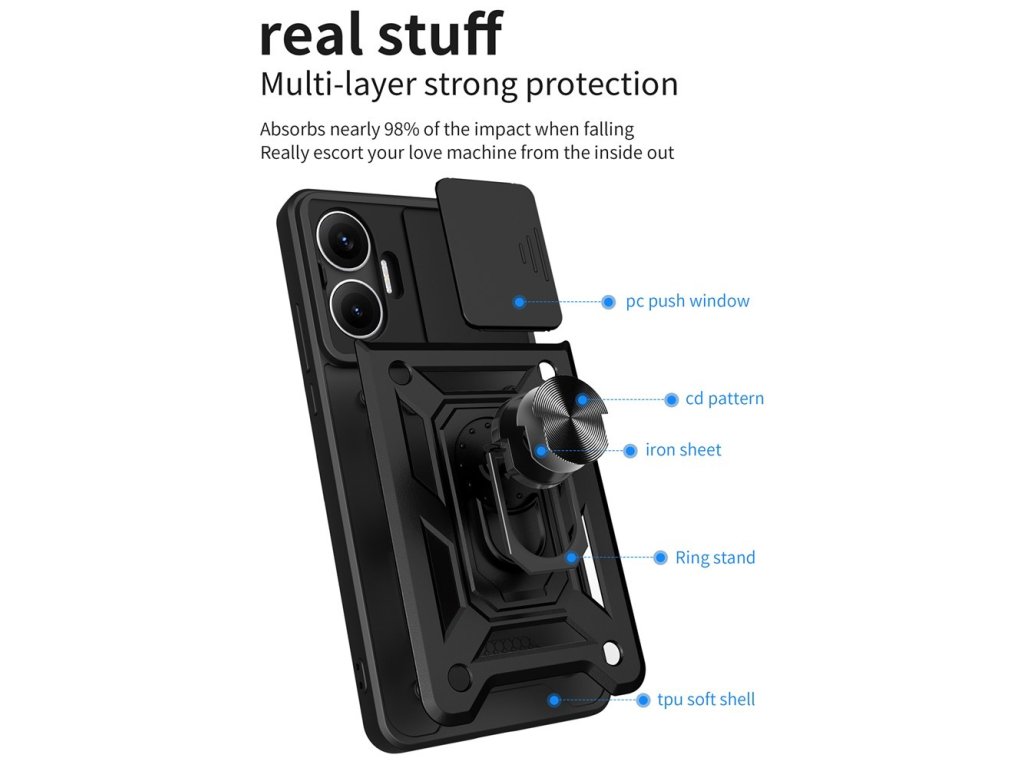 Puzdro Xiaomi Poco F7 s ochranou pre kamery a krúžkovým stojanom⭐je tu pre teba! Objednaj si hneď teraz nárazuodolné puzdro Techsuit! Zamiluješ si ho!