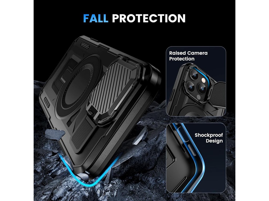 Ochrana pre kamery, stolový stojan a integrovaný magnetický prsteň. To sú hlavné výhody, ktoré robia z puzdra proti nárazom skutočne prémiové puzdro.