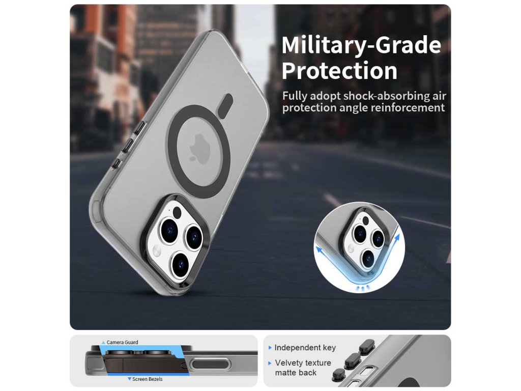 Puzdro iPhone 15 Pro Max odolné proti nárazom predstavuje ideálny kompromis medzi priľnavosťou a dotykovou plynulosťou, vďaka zloženiu z TPU a PC.