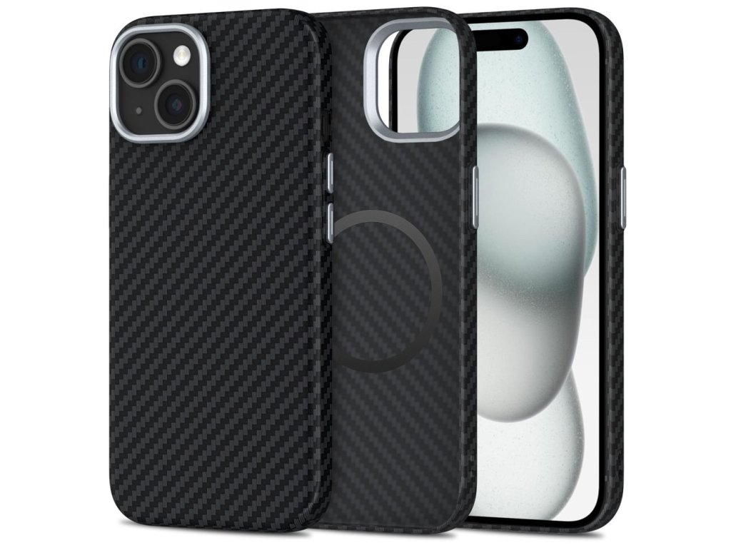 Techsuit – CarbonHalo MagSafe obal na iPhone 15 – čierny