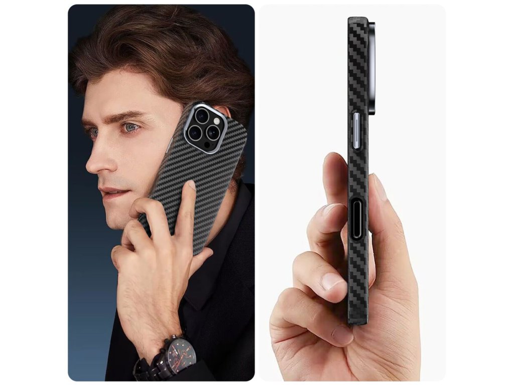 Vyrába sa z vysoko kvalitného kompozitu, ktorý verne reprodukuje exkluzívnu textúru uhlíkových vlákien, tenký obal Techsuit ponúka dokonalú rovnováhu medzi ochranou a nízkou hmotnosťou.
