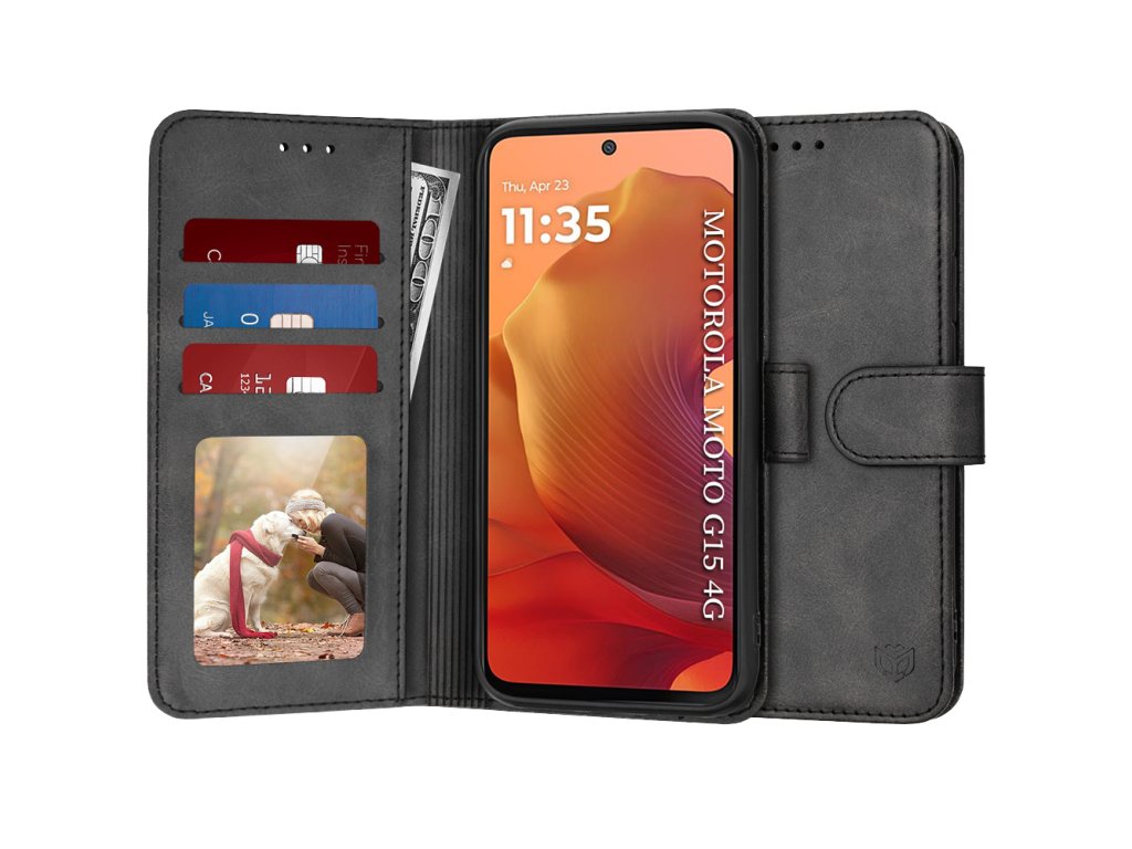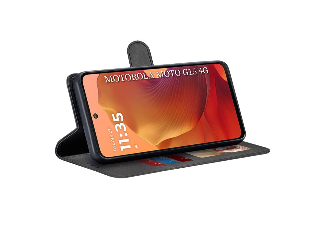Tento flip cover obal Motorola Moto G15, vyrobený z kvalitnej ekologickej kože, naznačuje rafinovanosť a prestíž. Vyberte si elegantný obal pre váš smartphone!