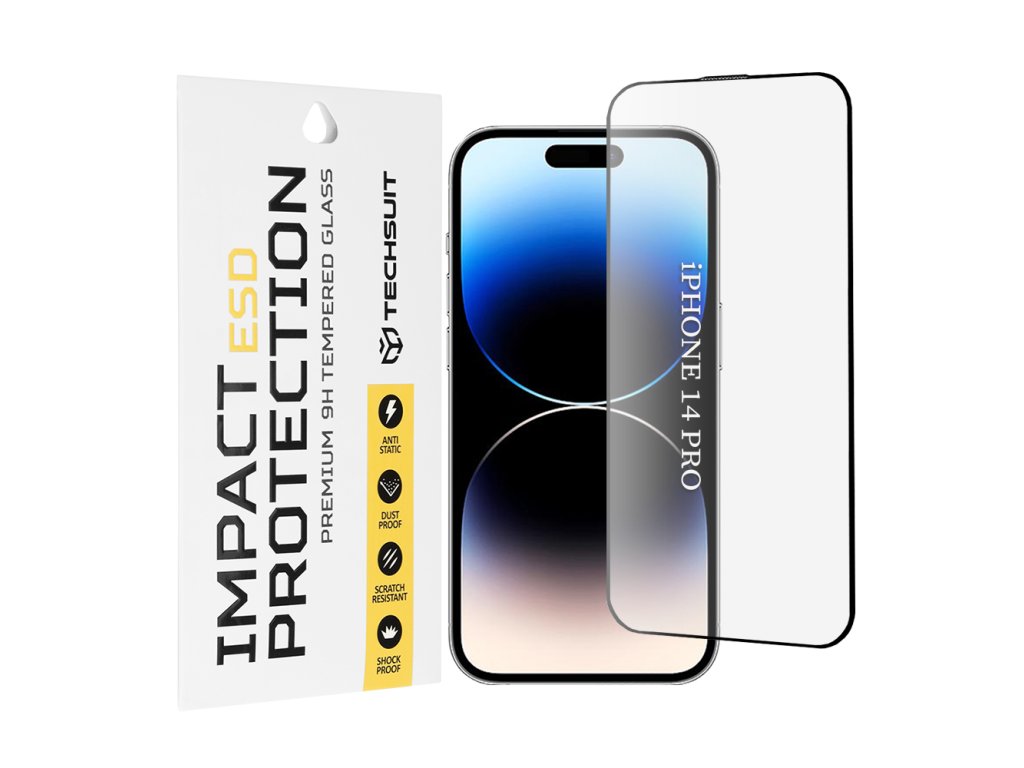 Techsuit – ESD ochranné tvrdené sklo na iPhone 14 Pro – čierne