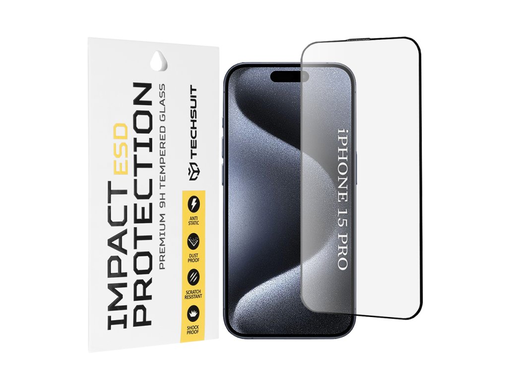 Techsuit – ESD ochranné tvrdené sklo na iPhone 15 Pro – čierne