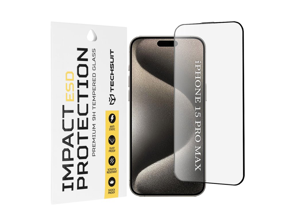 Techsuit – ESD ochranné tvrdené sklo na iPhone 15 Pro Max – čierne