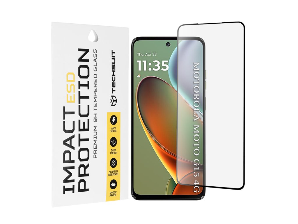 Techsuit – ESD ochranné tvrdené sklo na Motorola Moto G15 / G15 Power – čierne