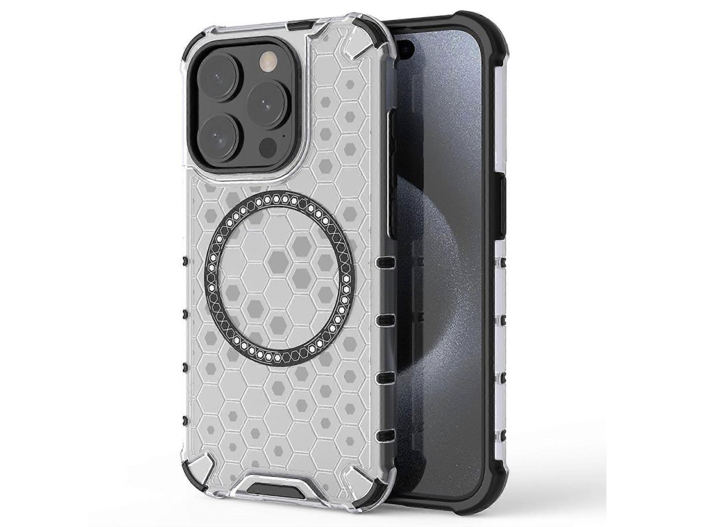 Techsuit – HoneyComb Shield MagSafe – ochranný obal na iPhone 15 Pro Max – biely