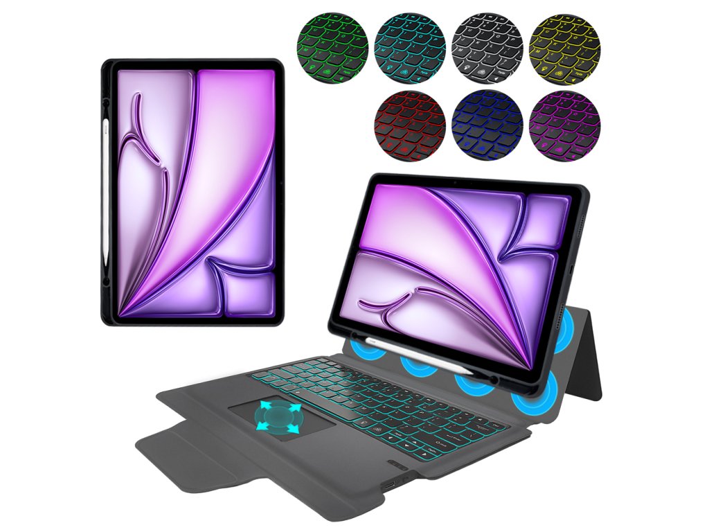 Techsuit – KeyTab Pro puzdro s klávesnicou + ochranné sklo (s RGB bezdrôtovou klávesnicou / držiakom na stylus) na iPad Air 13 (2024 / 2025) – čierne