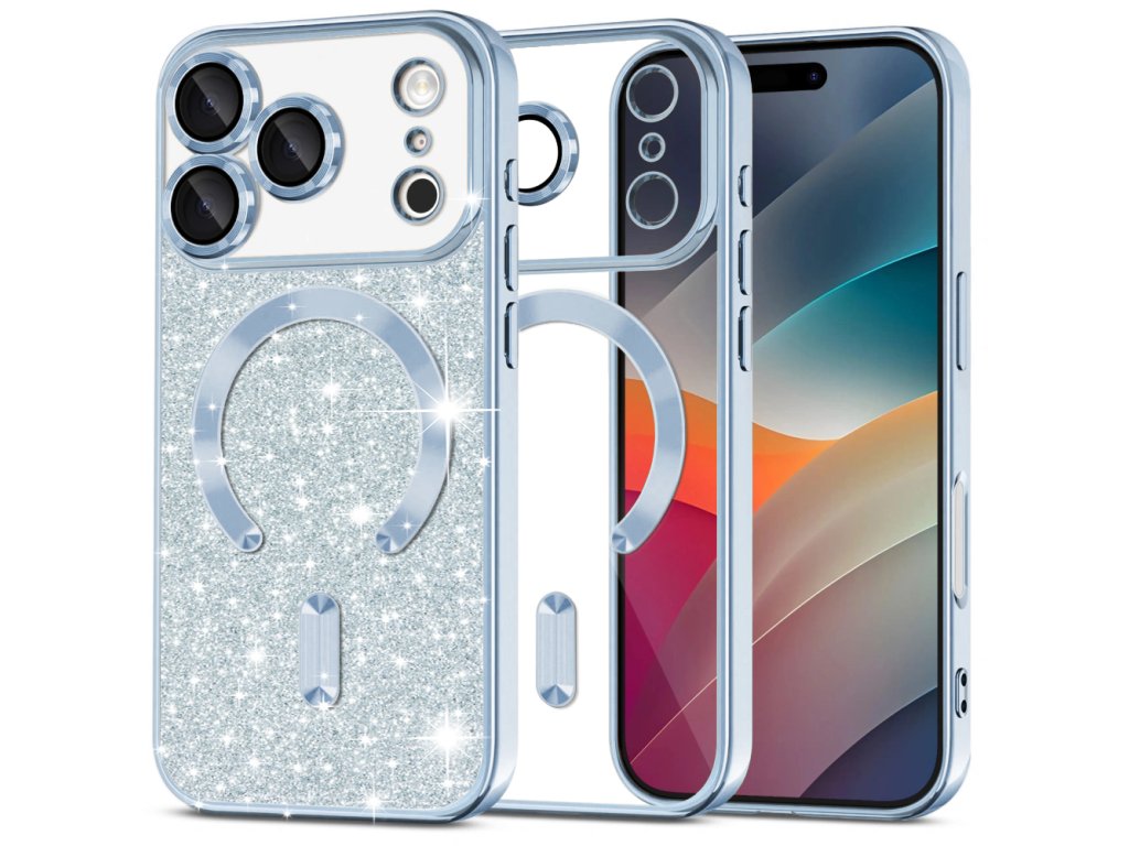Techsuit – Luxury Glitter MagSafe kryt na iPhone 17 Pro – svetlomodrý