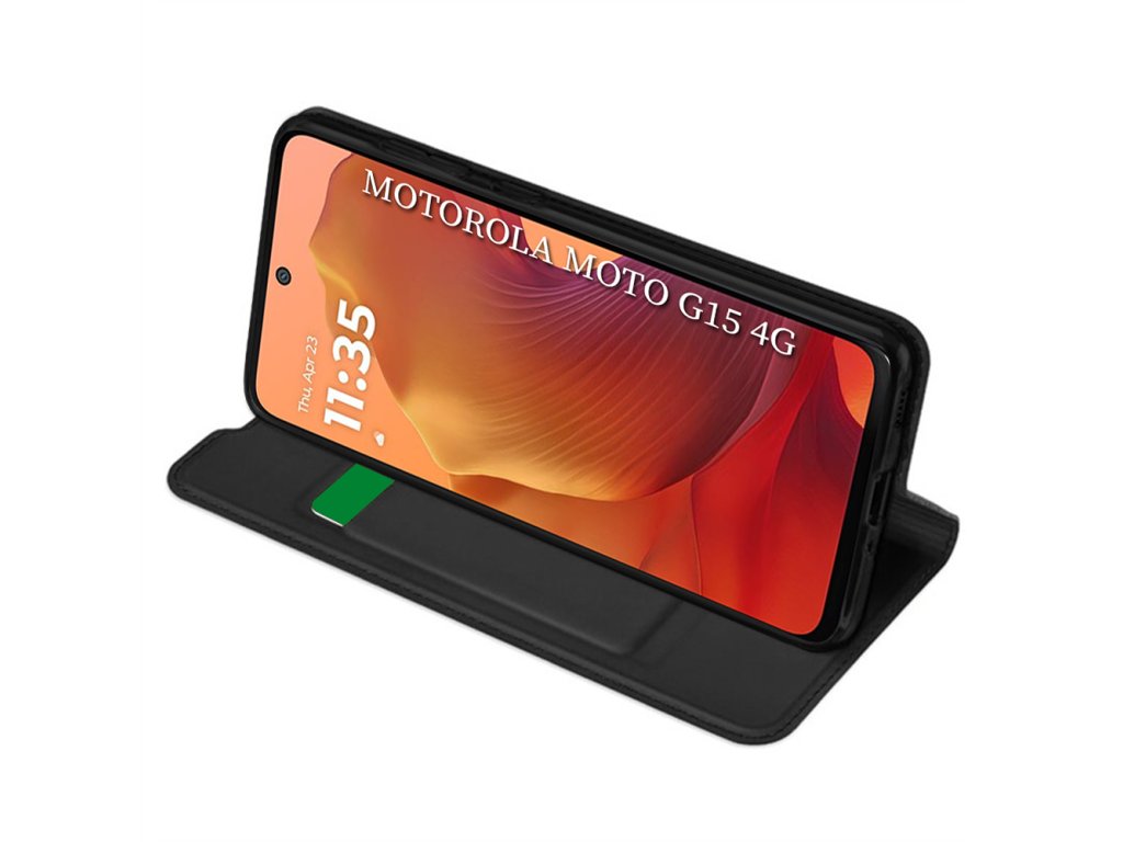 Puzdro typu kniha Motorola Moto G15 chráni celý povrch vášho telefónu. Predná, zadná strana, bočné časti, kamery. Vychutnajte si všetky jej výhody!