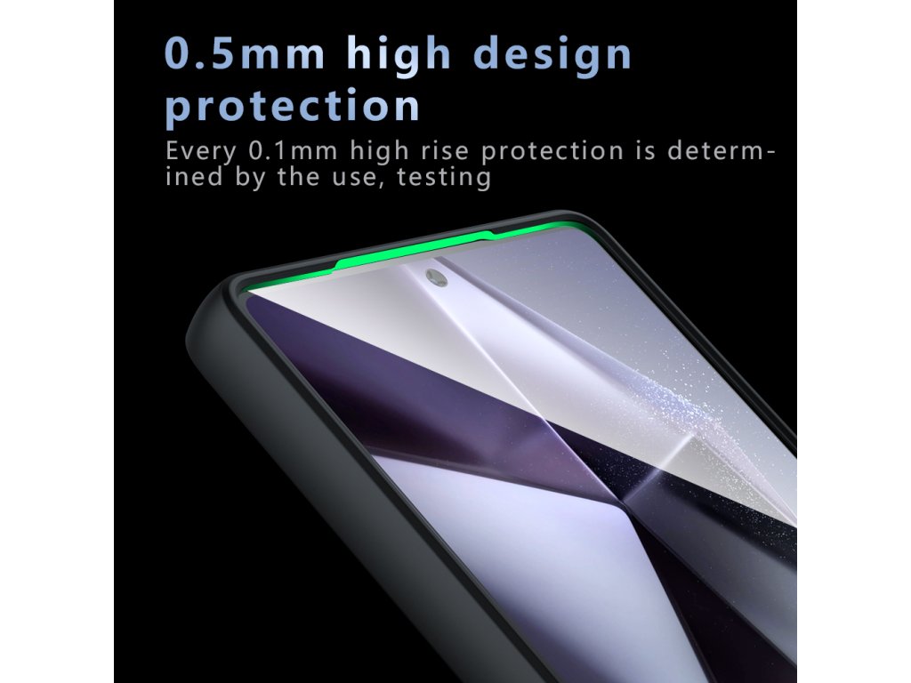 Zvýšené okraje obalu Samsung Galaxy S24 FE obopínajú kamery a displej, čím zabraňujú priamemu kontaktu s tvrdými povrchmi.