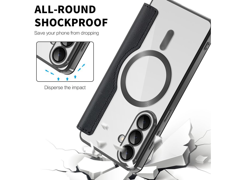 Kryt Samsung Galaxy S26 v štýle peňaženky umožňuje okamžité zarovnanie s akýmkoľvek MagSafe príslušenstvom bez sklzu a bez interferencií.