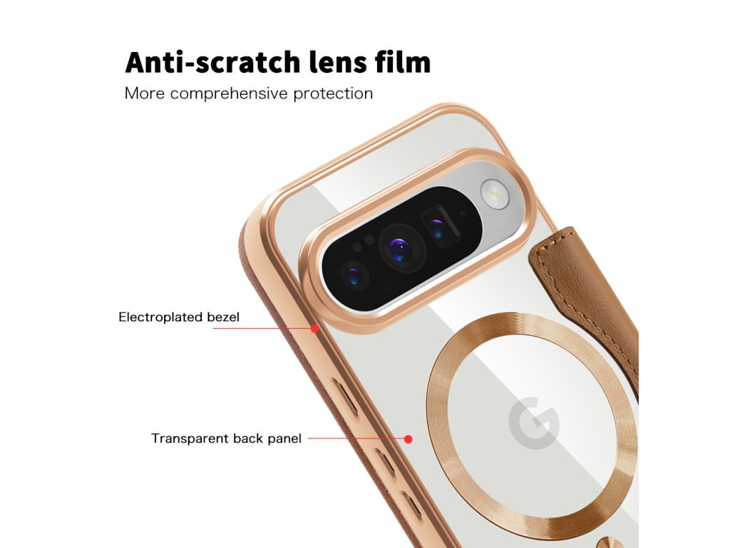 Tu je kryt pre Google Pixel 10 z ekologickej kože a TPU s priehľadným povrchom, prerušovaným lesklými akcentmi.