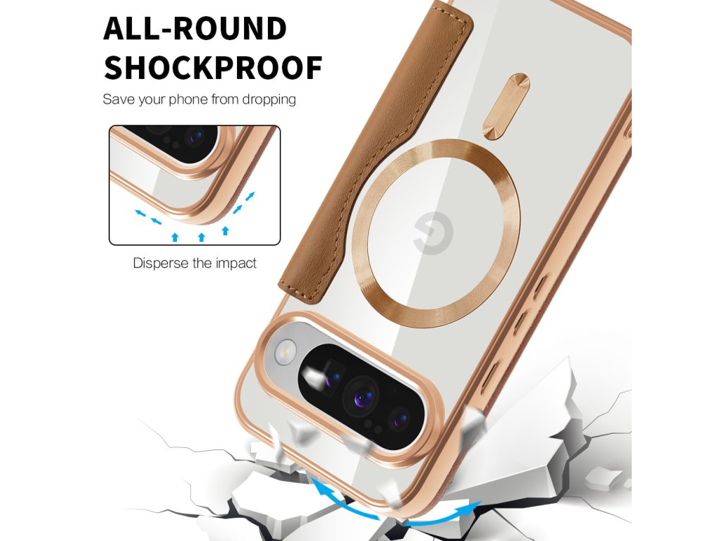 Toto je puzdro pre Google Pixel 10 Pro XL z ekologickej kože a TPU s priehľadným povrchom, prerušovaným lesklými akcentmi.