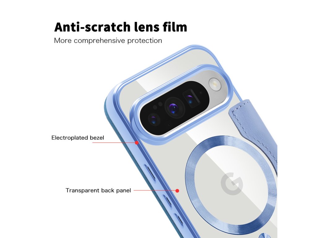 Toto je puzdro pre Google Pixel 10 Pro XL z ekologickej kože a TPU s priehľadným povrchom, prerušovaným lesklými akcentmi.