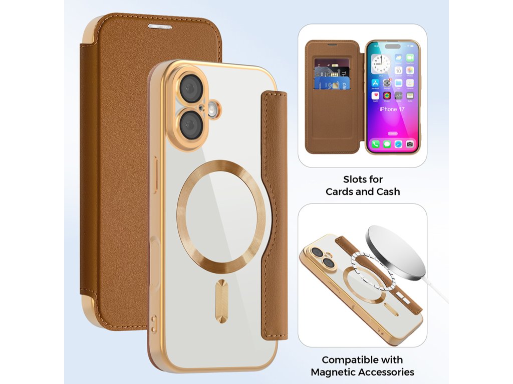 Techsuit – SmartMag Book Case knižkové puzdro na iPhone 17 – hnedé
