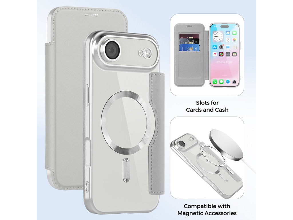 Techsuit – SmartMag Book Case knižkové puzdro na iPhone 17 Air – sivé