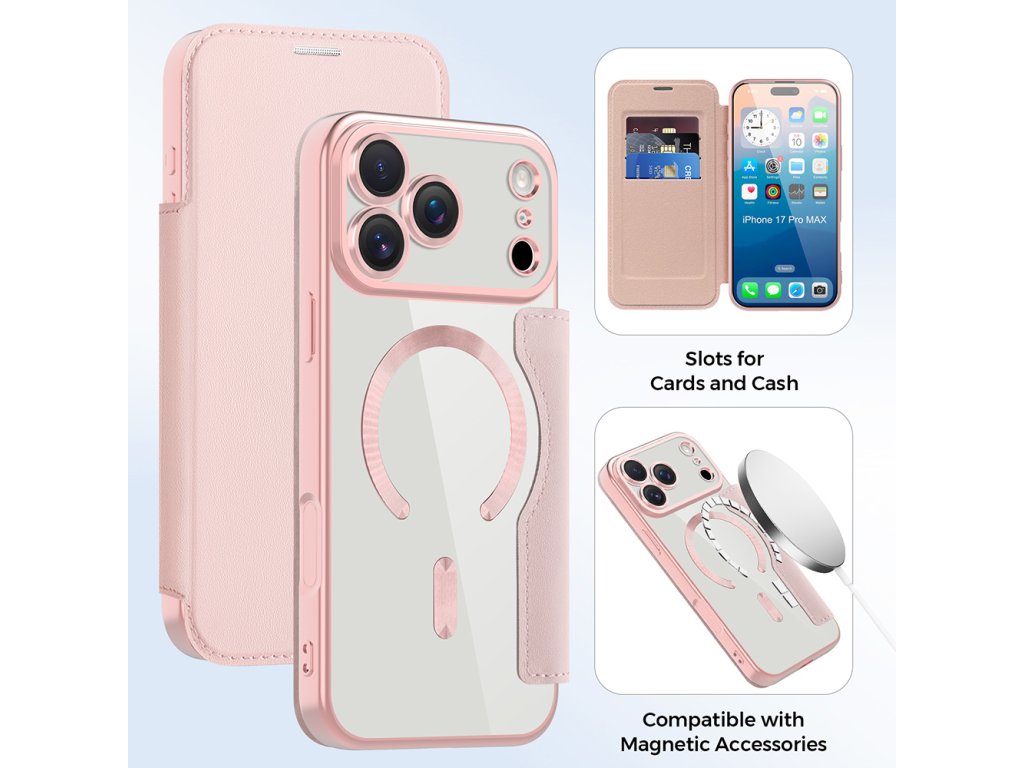 Techsuit – SmartMag Book Case knižkové puzdro na iPhone 17 Pro Max – ružové