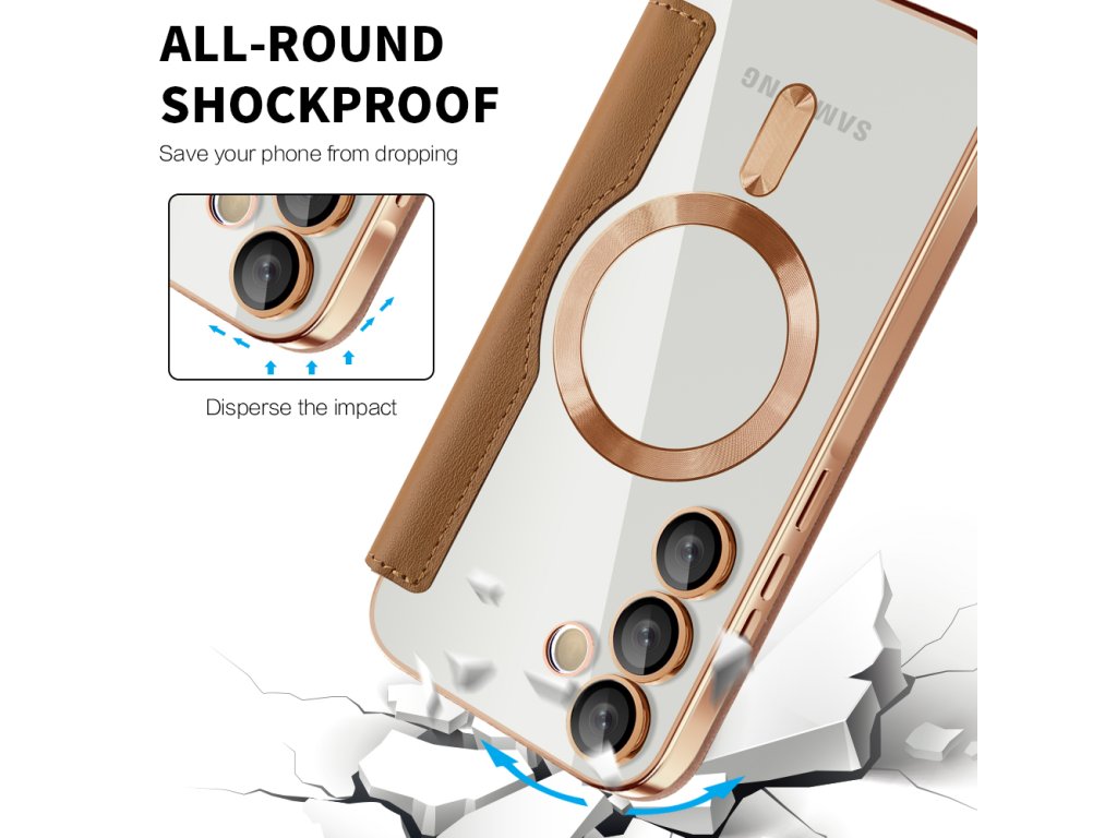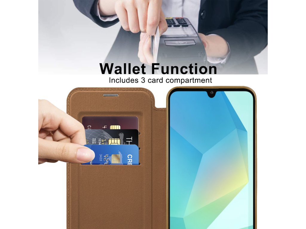 Puzdro Samsung Galaxy A17 5G peňaženka umožňuje okamžité zarovnanie s každým MagSafe príslušenstvom, bez kĺzania a interferencie.