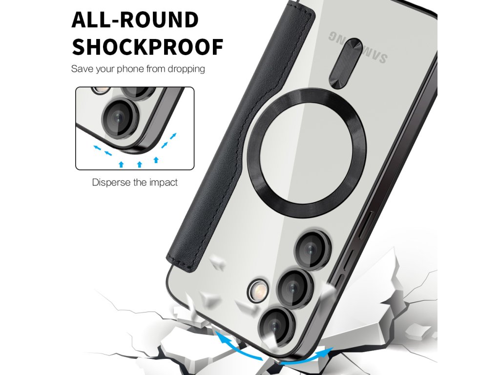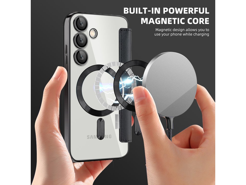 Puzdro Samsung Galaxy S25 FE peňaženka umožňuje okamžité zarovnanie s akýmkoľvek príslušenstvom MagSafe, bez kĺzania a bez interferencií.