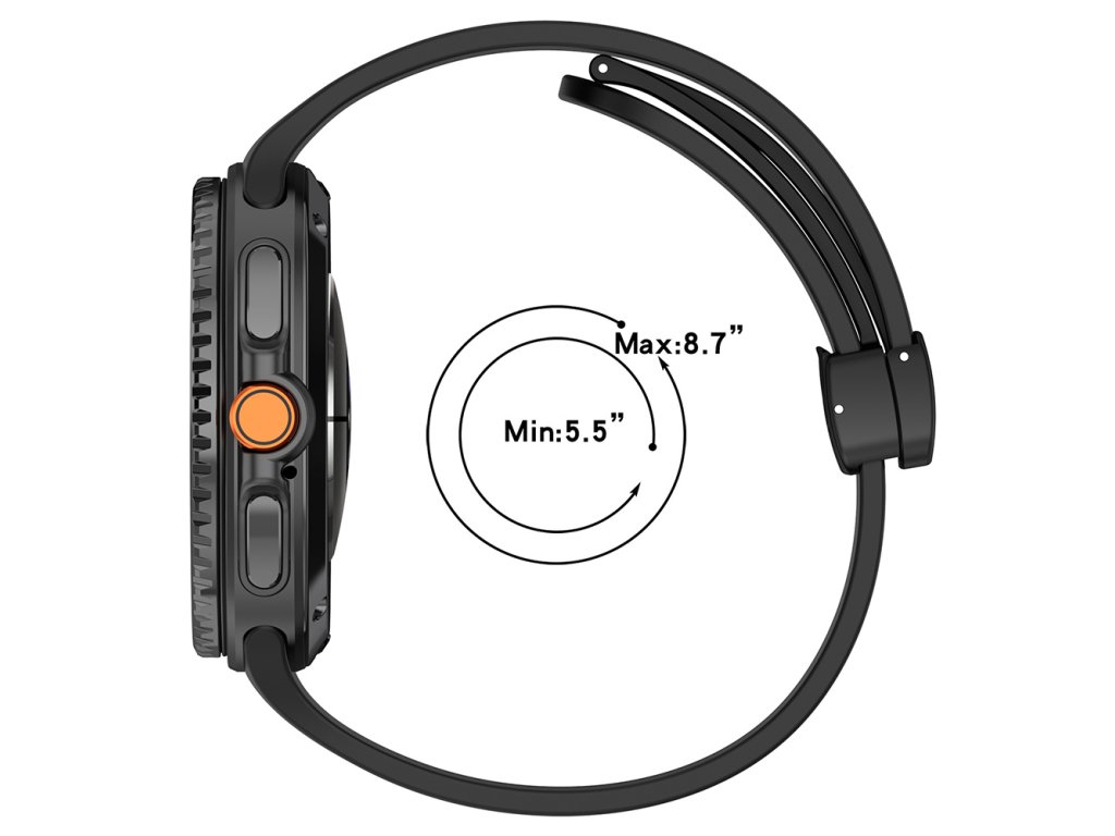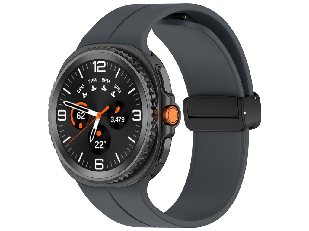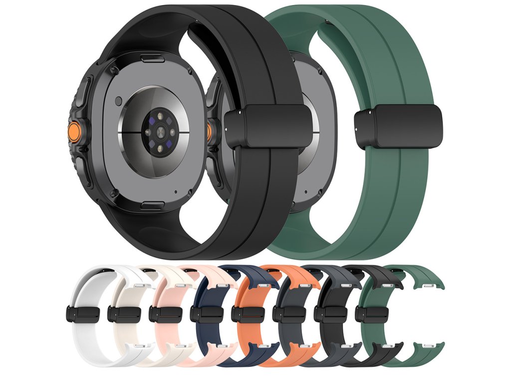 Remienok na inteligentné hodinky pre mužov je vyrobený z najkvalitnejšieho silikónu. Pracka remienka na hodinky Samsung Galaxy Watch8 40mm je vyrobená z kovu a disponuje magnetom, ktorý umožňuje lepšie upevnenie.
