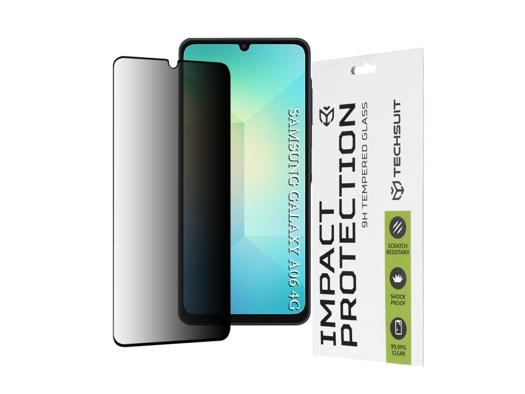 Objav novú⭐súkromnú fóliu Samsung Galaxy A06! Odolná voči nárazom, odtlačkom a poškriabaniu, ochranná sklenená fólia Techsuit ti zabezpečí požadované súkromie!