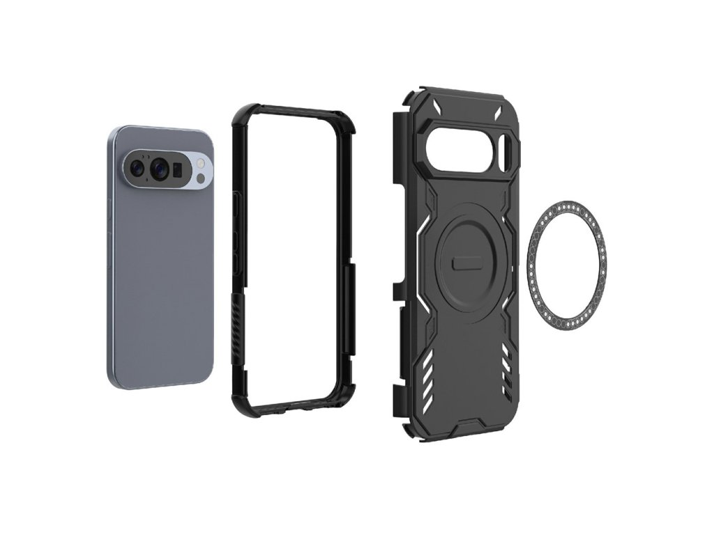 Puzdro proti nárazu Google Pixel 10 ArmorMag Case kombinuje robustný vzhľad s futuristickými líniami a high-tech detailmi s textúrou proti skĺznutiu pre bezpečné a pohodlné uchopenie.