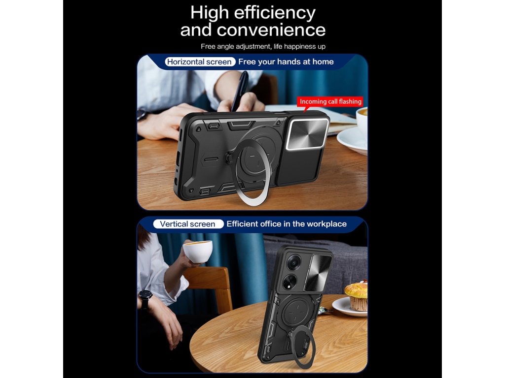 Ušetrite rodinný rozpočet investovaním iba raz do multifunkčného, nevyhnutného produktu. Obal Oppo A98 5G je vybavený otočným krúžkom z nehrdzavejúcej ocele, ako stojan pre telefón, aby uľahčil sledovanie mediálneho obsahu v landscape formáte.