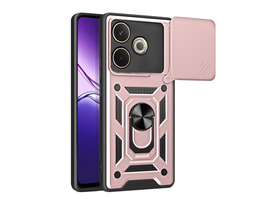Pozri sa bližšie na tento originálny obal Oppo A5 Pro 4G Techsuit! Nielenže chráni tvoj telefón pred škrabancami, ale má aj vstavanú ochranu pre kameru a kovový krúžkový stojan. Je úžasný!