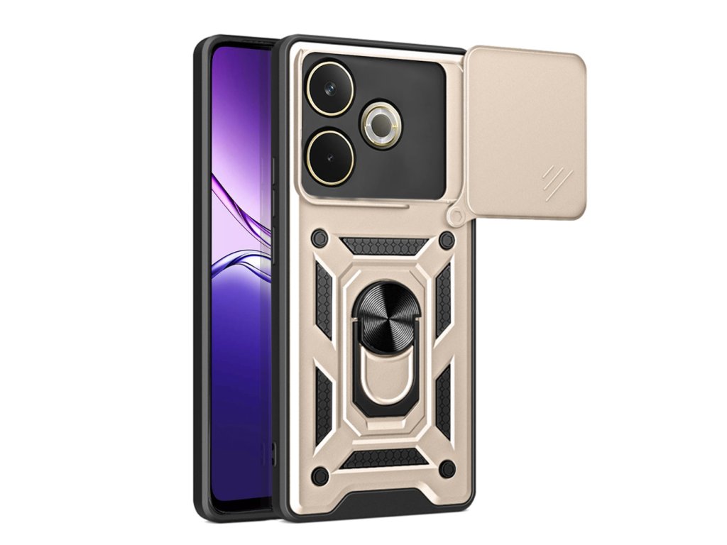 Pozri sa bližšie na tento originálny obal Oppo A5 Pro 4G Techsuit! Nielenže chráni tvoj telefón pred škrabancami, ale má aj vstavanú ochranu pre kameru a kovový krúžkový stojan. Je úžasný!
