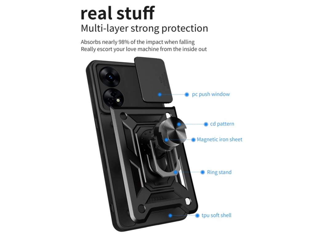 Pozri sa bližšie na toto originálne puzdro Oppo A78 4G Techsuit! Nielenže chráni tvoj telefón pred škrabancami, ale má aj zabudovanú ochranu pre kameru a kovový podporný krúžok. Je úžasné!