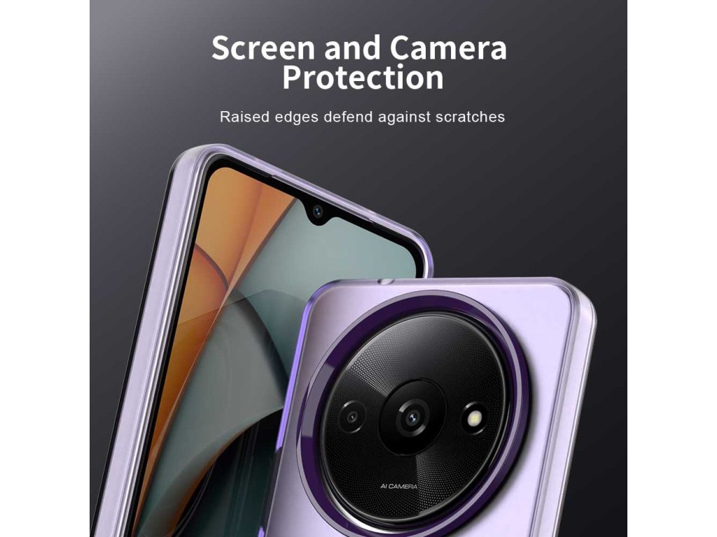 Kryt Xiaomi Redmi A3 slim má decentne zvýšené okraje, ktoré vytvárajú oddelenie medzi citlivými povrchmi a akýmkoľvek podkladom.
