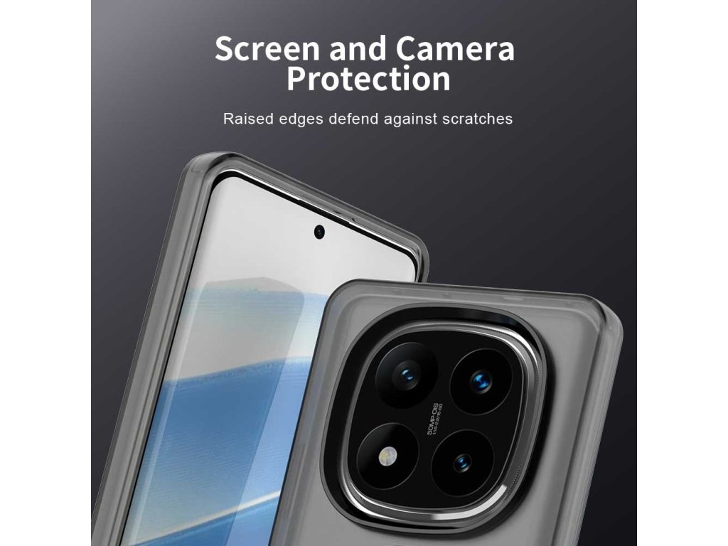 Štíhle puzdro Xiaomi Redmi Note 14 Pro 5G má jemne zvýšené okraje, ktoré vytvárajú separáciu medzi citlivými povrchmi a akýmkoľvek podporným plánom.