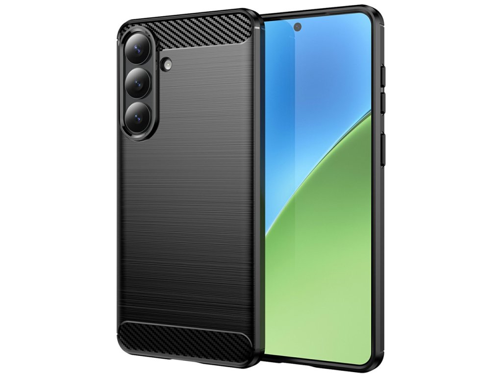 Techsuit - Carbon Silicone puzdro s karbónovým vzorom pre Samsung Galaxy S26 Edge - čierne