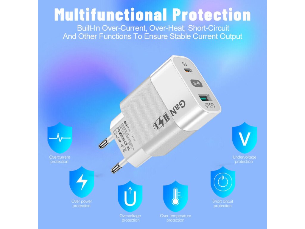 Odporúčame vám túto GaN Techsuit nabíjačku s dvoma portami na bezpečné, efektívne a rýchle nabíjanie. Poskytuje množstvo ochrany pred skratom, prehriatím, prebitím a optimálne nabíja váš telefón. Čo viac si môžete priať?