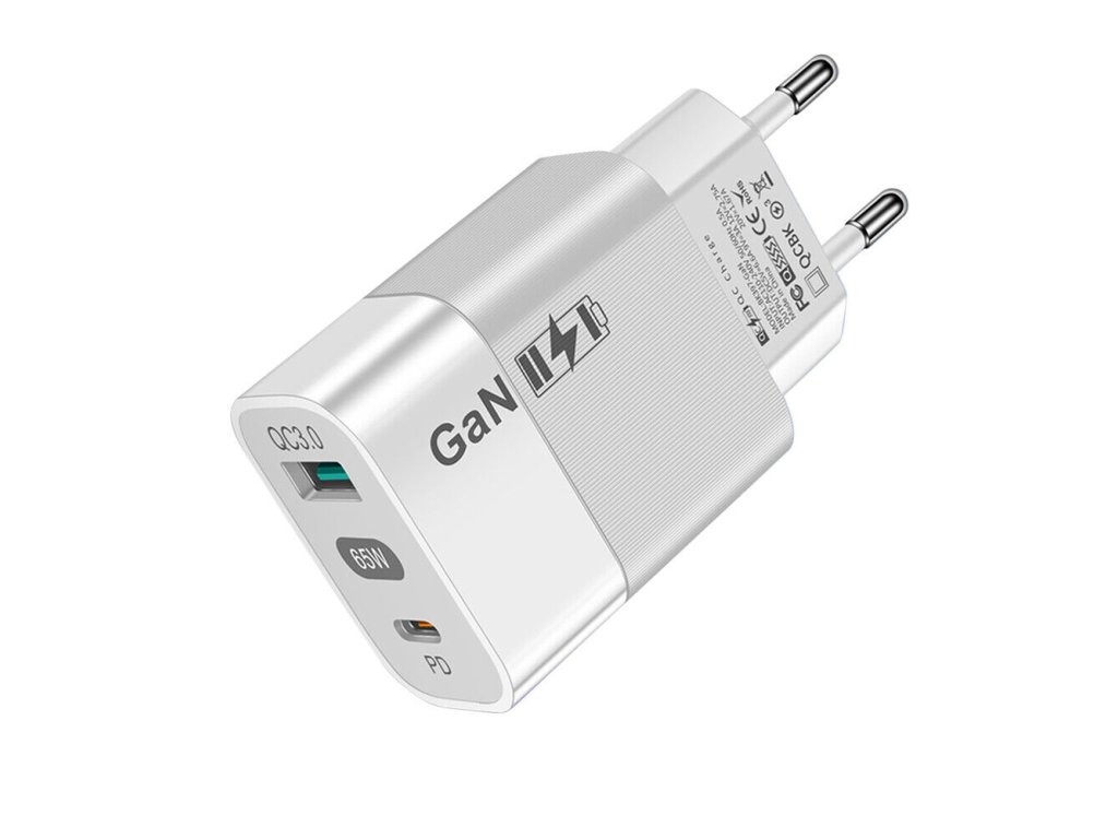 Techsuit CHPD131 sieťová nabíjačka – GaN, USB + USB-C, rýchlonabíjanie, 65W – biela