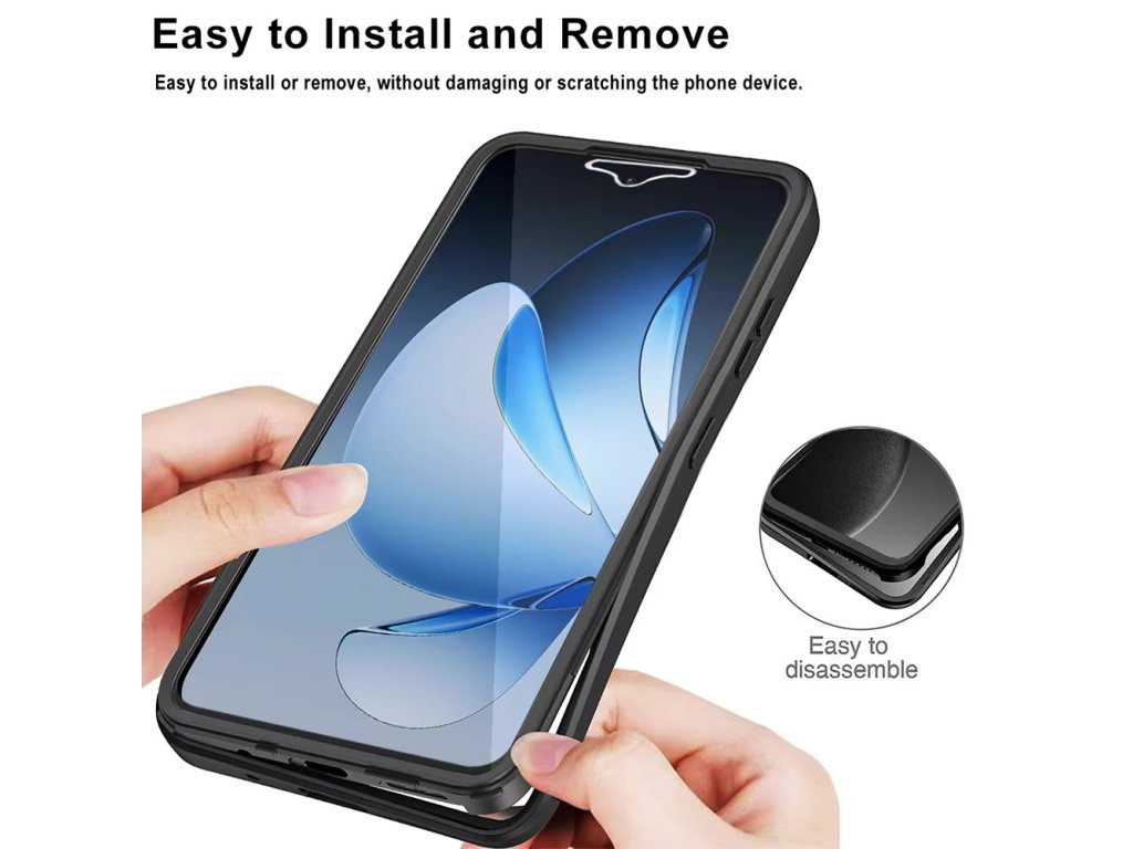 Odolné puzdro má dve symetrické pásy, ktoré zabezpečujú interakciu medzi Oppo Reno13 a inými povrchmi. Týmto spôsobom puzdro zabraňuje kĺzaniu a zaručuje dobré držanie, dokonca aj keď ho používate jednou rukou.
