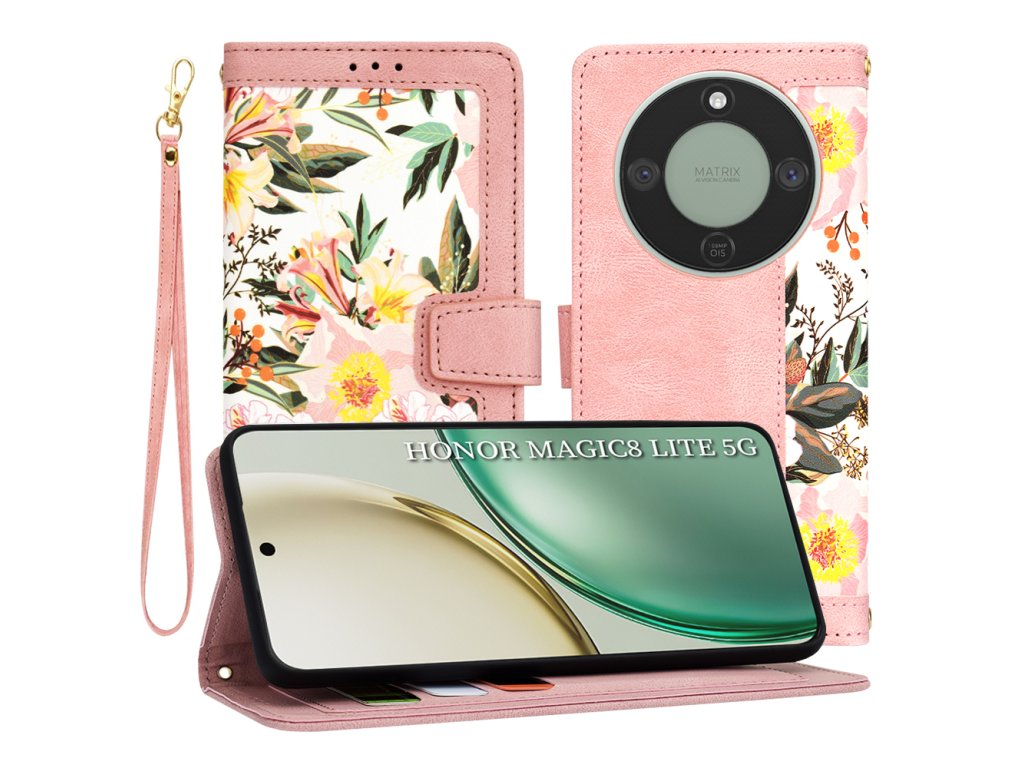 Aj my! Preto vám Techsuit prináša výnimočný flip cover obal Honor Magic8 Lite. Kryt na smartfón má originálny dizajn s kvetinovými akcentmi. Čítajte ďalej všetky výhody flip obalu spredu aj zozadu!
