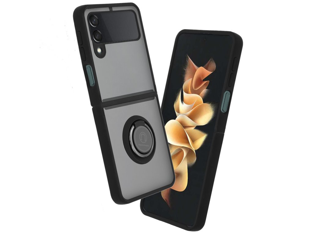 - Púzdro pre Samsung Galaxy Z Flip3 5G je vybavené v strede odnímateľným stojanovým krúžkom, ktorý umožňuje jeho jednoduché premenenie na stojan na stole.