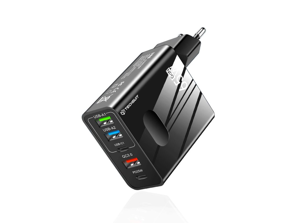 Techsuit - Premium Wall Charger PentaXPower (CHC1) nabíjačka 3× USB, 2× USB-C PD 25W, 65W, GaN, rýchlonabíjanie – čierna