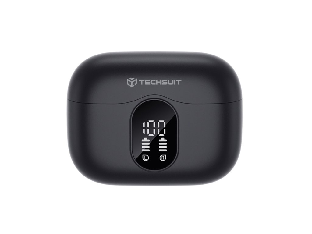 Techsuit - Premium Wireless Earbuds WaveBeat 100 (CW3) - Bluetooth V5.4, 300mAh, ANC, ENC, 4 Mic - Black