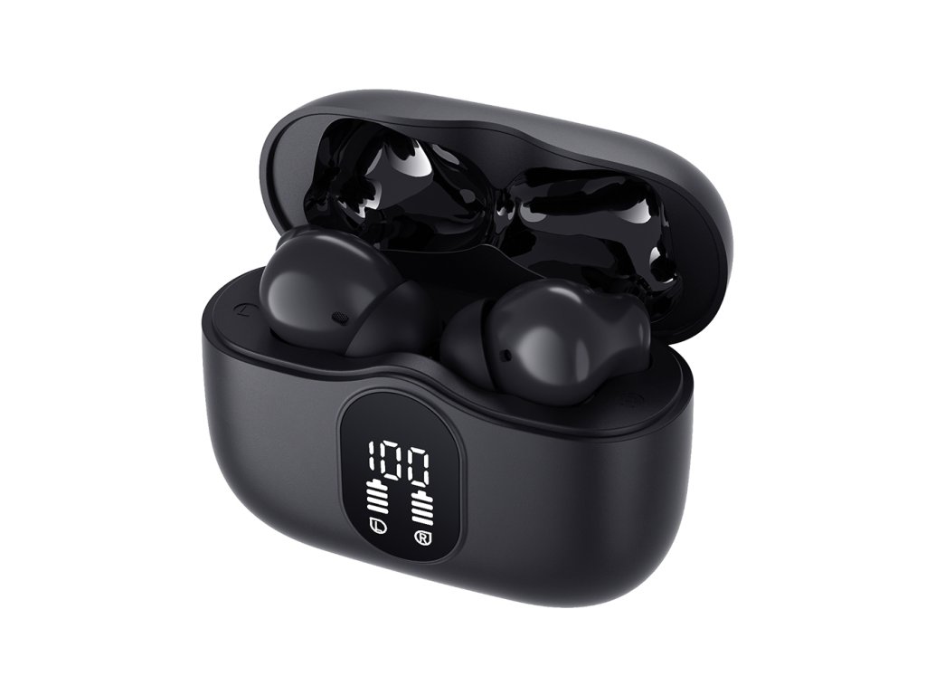 Techsuit - Premium Wireless Earbuds WaveBeat 100 bezdrôtové slúchadlá Bluetooth 5.4 s ANC a ENC, 4 mikrofóny, batéria 300 mAh – čierne