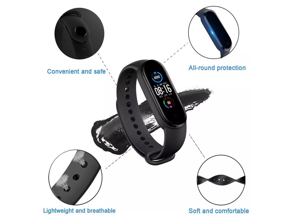 - Tento remienok Xiaomi Mi Band 5 je vyrobený z najkvalitnejšieho silikónu, je flexibilný, príjemný na dotyk a odolný proti opotrebeniu.