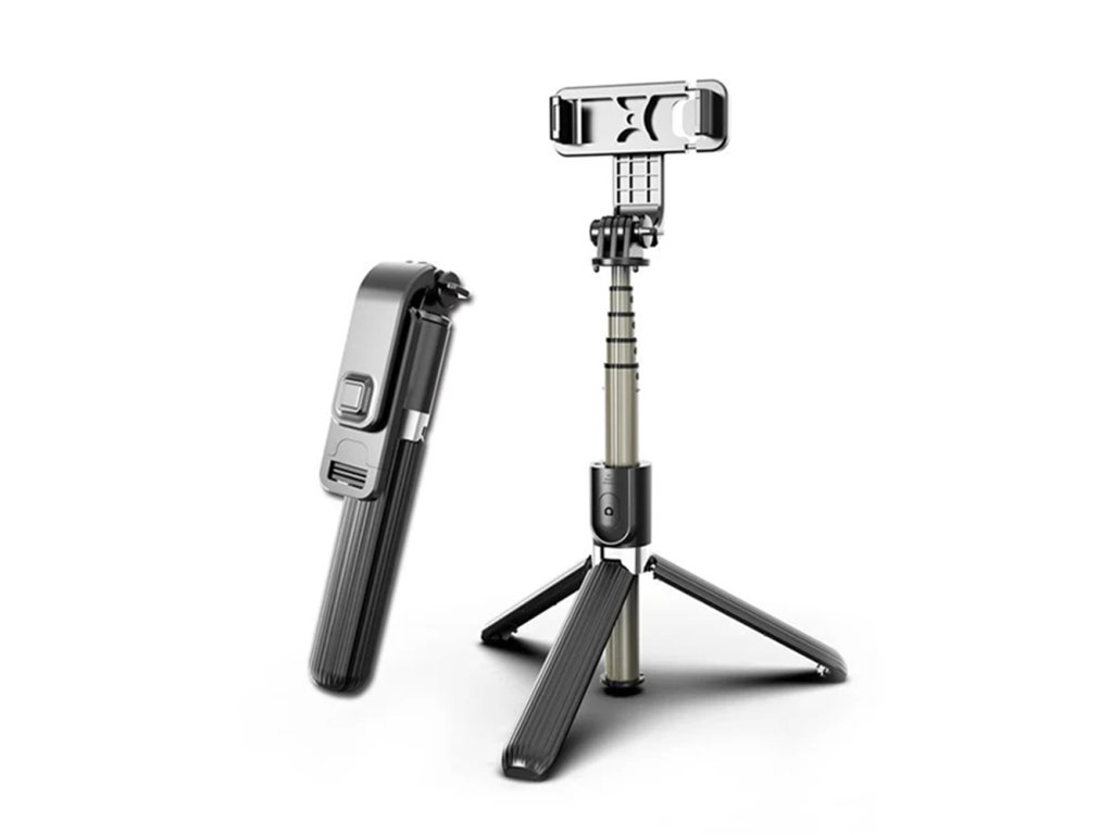 Techsuit - Selfie Stick (L03) selfie tyč so stabilným statívom, Bluetooth diaľkové ovládanie, hliníková zliatina, 83 cm – čierna
