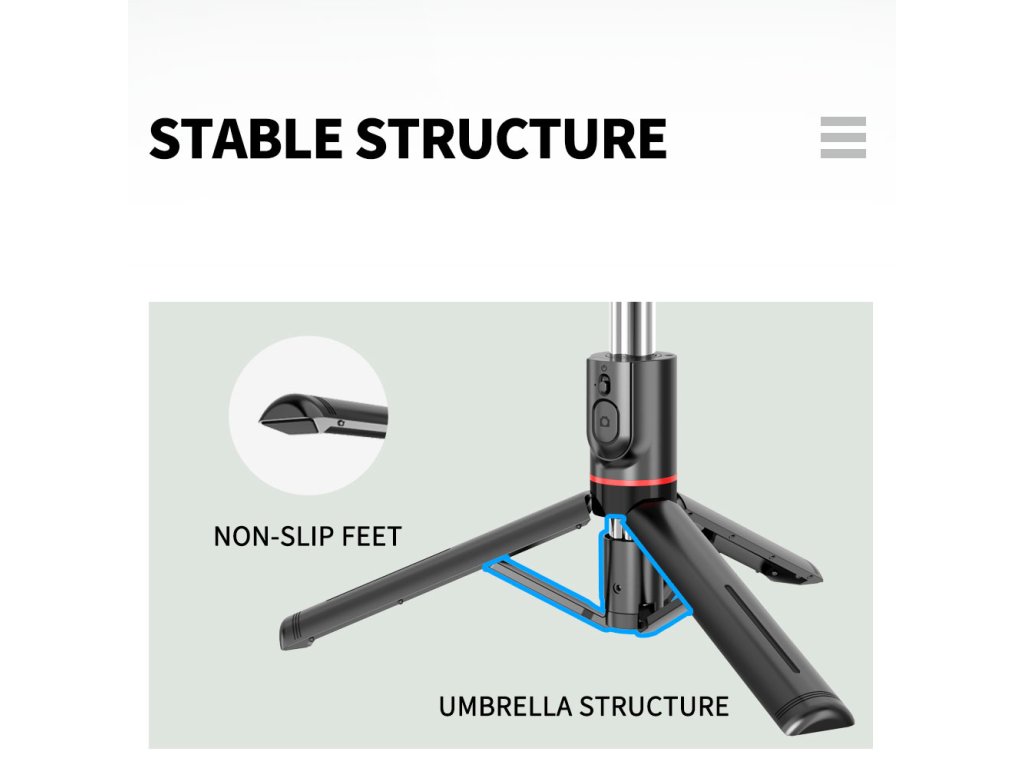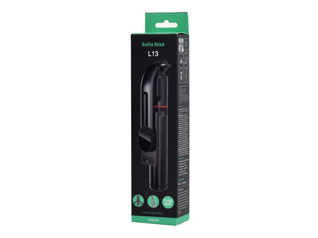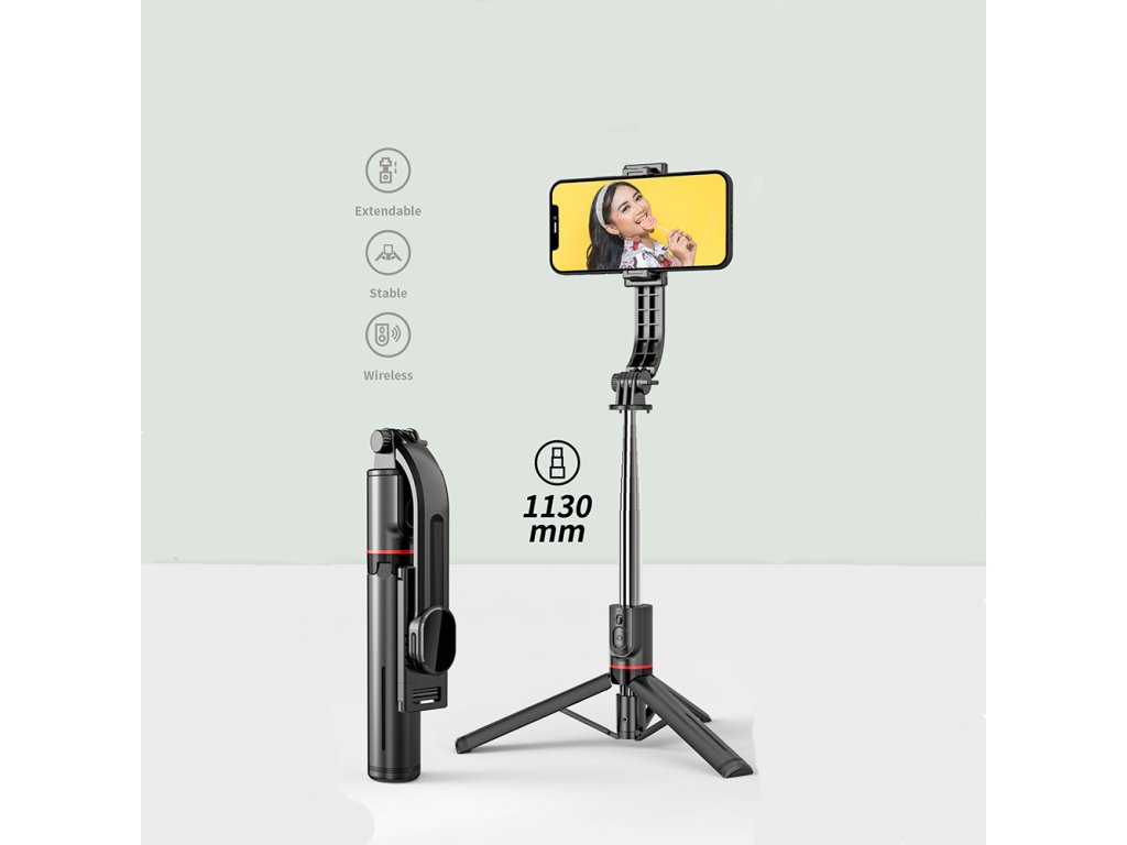 Techsuit - Selfie Stick (L13) selfie tyč so stabilným výsuvným statívom, Bluetooth diaľkové ovládanie, 113 cm – čierna